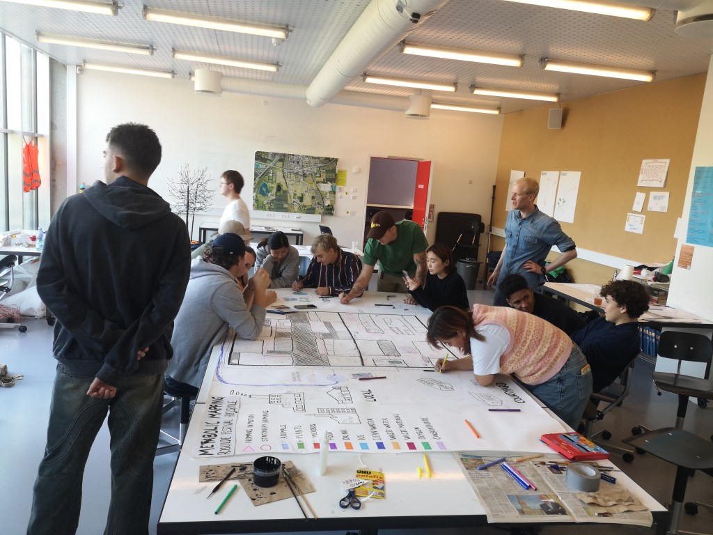 In this workshop, we dived into the primordial soup of Roskilde Festival Højskole and explored the organic flows around us. Where do they (we) enter, where do they (we) leave? How are we, the building, and the city wrapped up in the metabolic tangle?